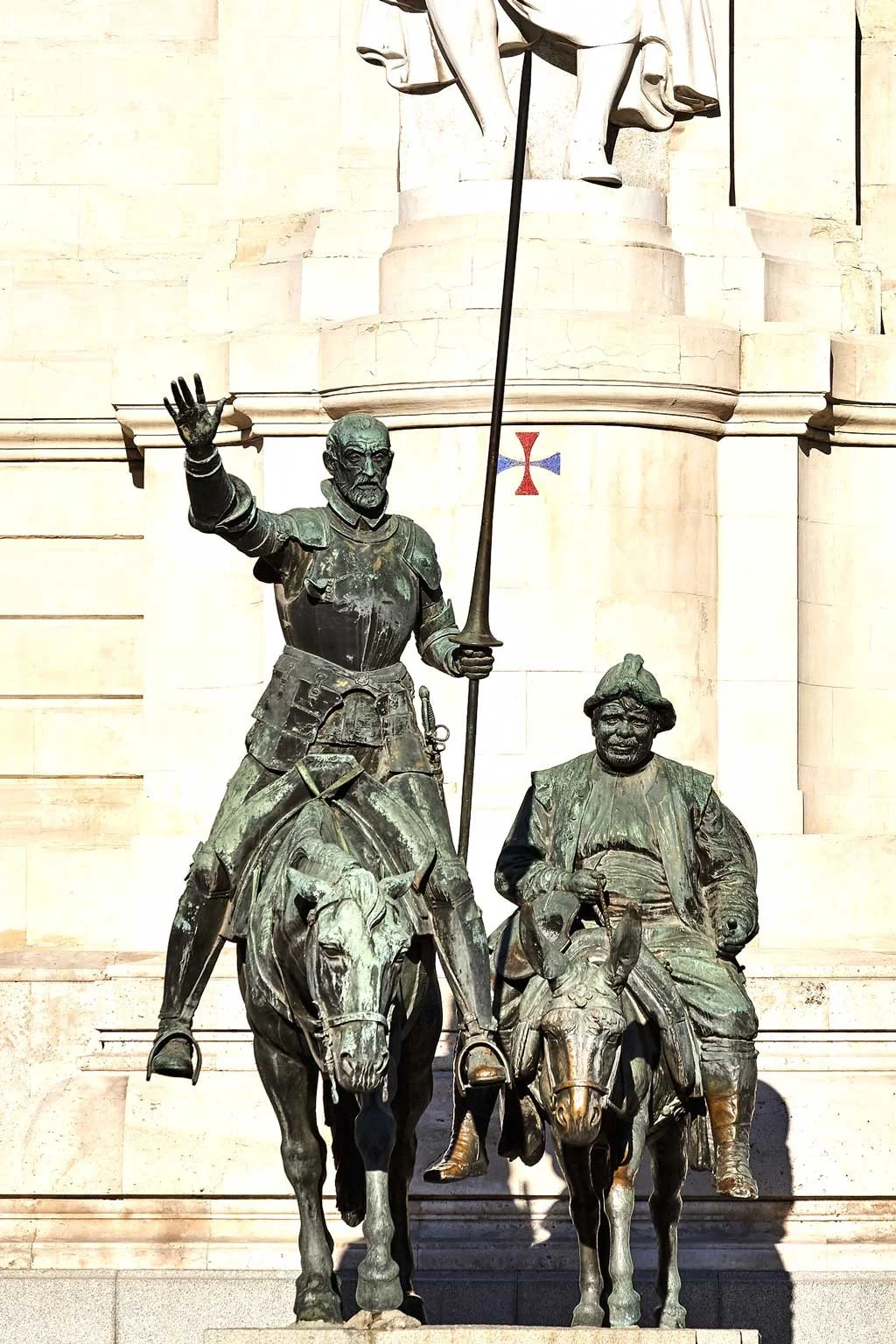 We left the heat in Andalucia, Plaza Pilar time 17:40 and 38C. Don Quijote partly in the shadow did not seem to suffer in the heat.